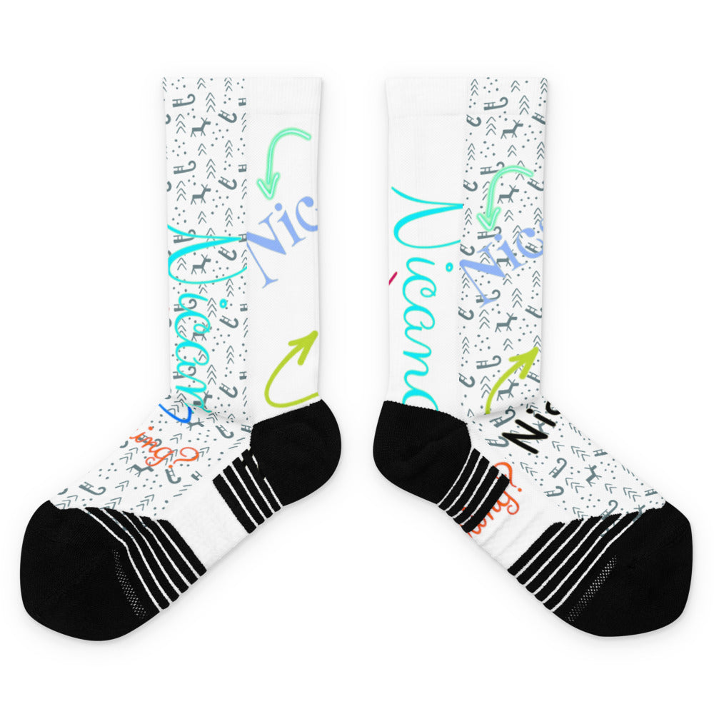 These custom-made Nicana What You Wearing basketball socks are a great choice for both casual and sporty looks. Add them to your outfit for the best combination of style and comfort!